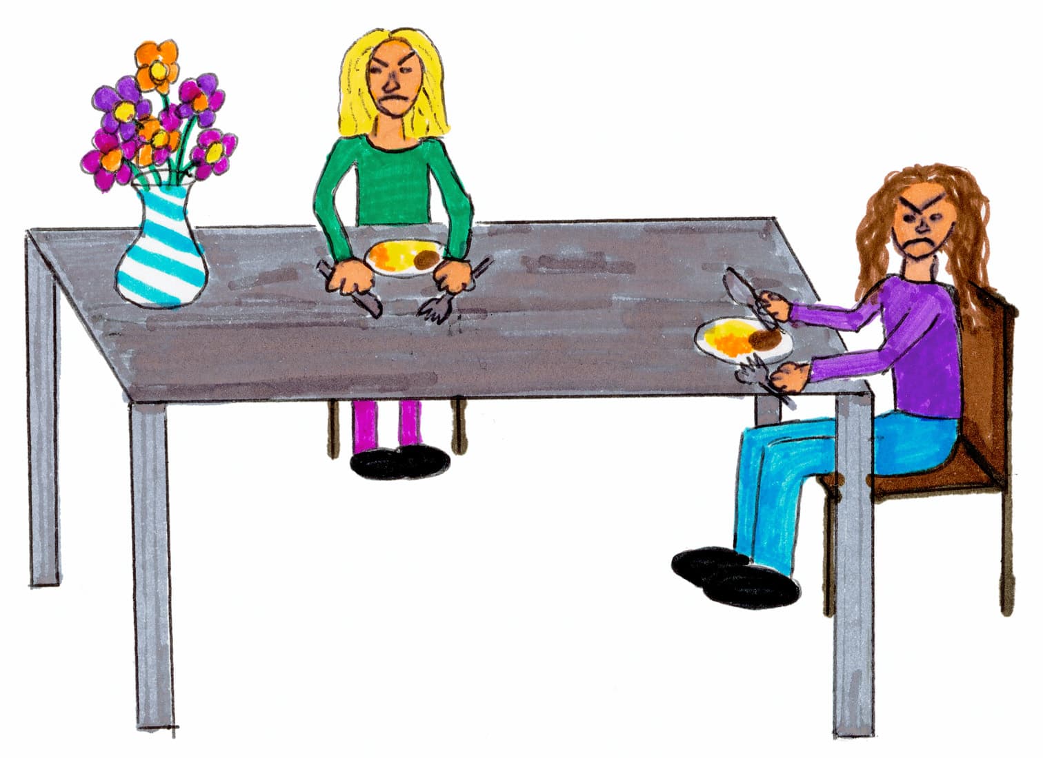 Ihr habt bis zum Abendessen kein Wort miteinander geredet, beim Abendessen hat sich deine Mutter entschuldigt und ihr habt euch wieder versöhnt. Im allgemeinen habt ihr als Familie sehr viel Streit, wegen jeder kleinen Sache. Doch bei jedem Streit versöhnt ihr euch schnell wieder.